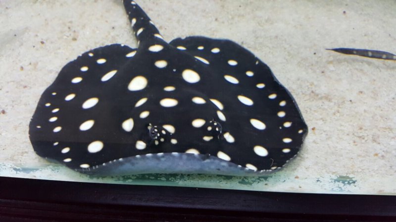 Hybrid Black Diamond Stingrays are striking freshwater bottom dwellers, known for their jet-black bodies adorned with bold white or golden spots. These stingrays spend most of their time gliding along the tank floor or resting on soft substrate, which helps protect their delicate undersides. They thrive in large, well-maintained aquariums with sandy bottoms.